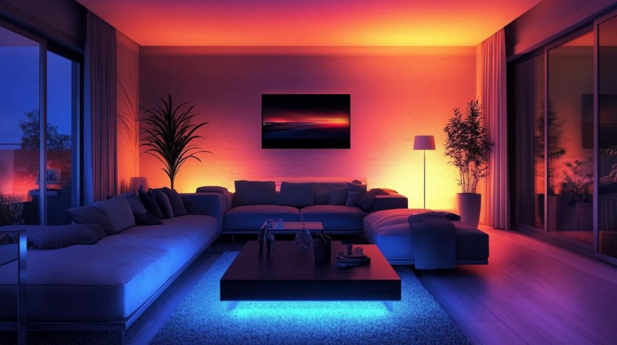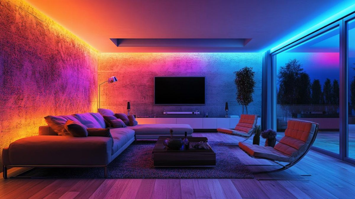 Dans le salon, ces dispositifs d’éclairage décoratif soulignent l’architecture de la pièce en illuminant les corniches, les étagères ou le meuble télévision. L’éclairage d’ambiance créé par les teintes changeantes accompagne parfaitement les soirées cinéma ou les moments de convivialité. Les suspensions LED et plafonniers LED équipés de technologie RGB complètent harmonieusement les rubans pour un éclairage multicouche sophistiqué. La chambre se prête admirablement à l’installation de rubans derrière la tête de lit ou dans les niches murales, créant une atmosphère propice à la relaxation avec des tons doux le soir et des teintes énergisantes le matin.
