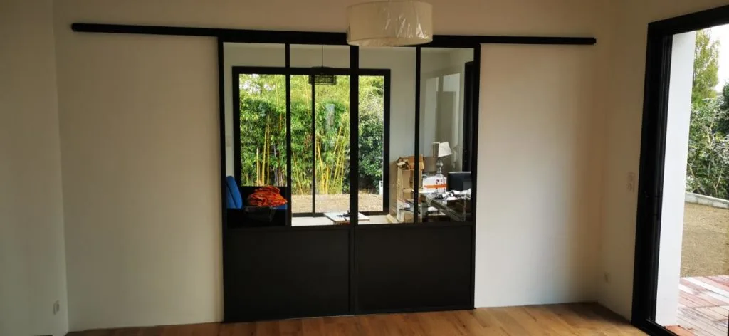 - Verrière à galandage (encastrement) : La structure coulisse dans une cloison spécialement aménagée, créant un effet de disparition totale à l’ouverture. Cette technique haut de gamme nécessite une préparation particulière du support mais offre un résultat esthétique exceptionnel.