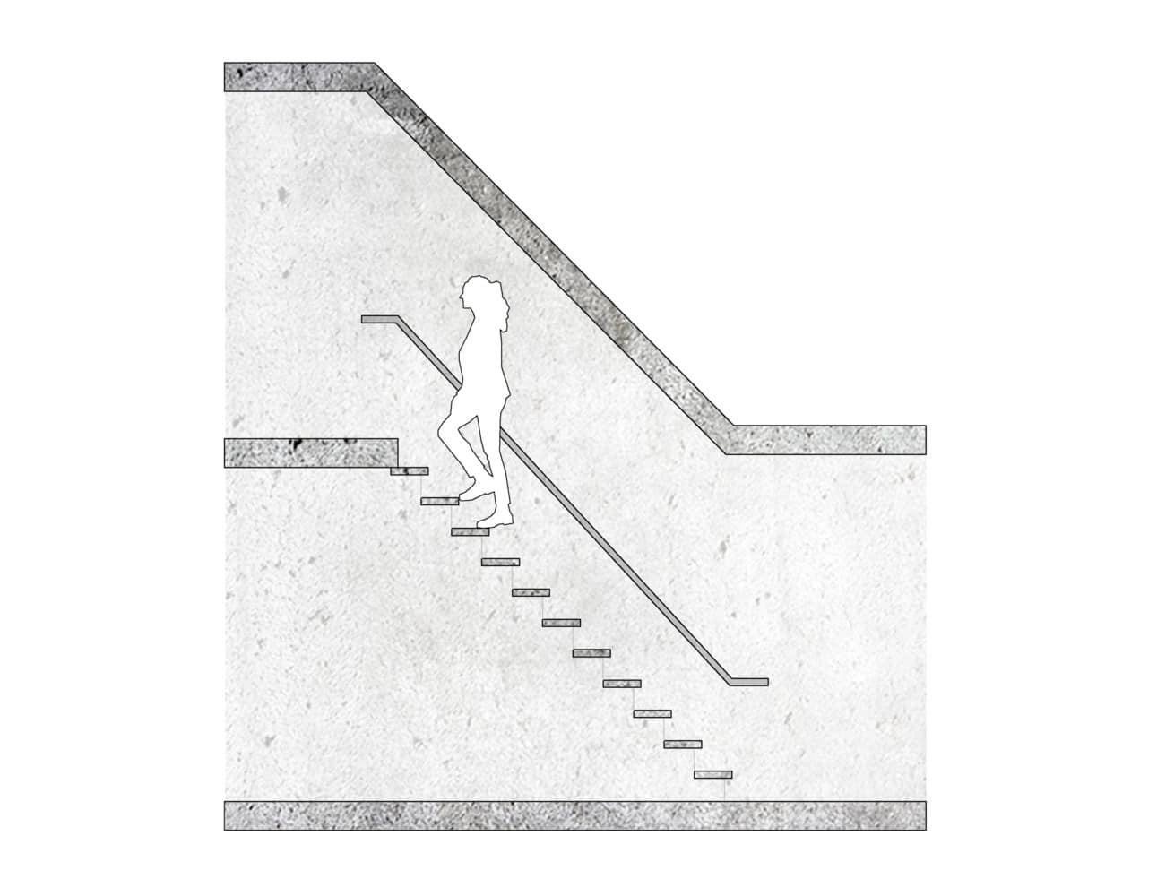 Reste à définir la largeur de l’escalier. Les règles varient selon l’usage et la réglementation en vigueur. Pour un logement individuel, 80 cm de large constituent le minimum recommandé. Dans les bâtiments publics, il faut miser sur plus d’1 mètre, en anticipant le flux d’utilisateurs. D’après le « Données des architectes » d’Ernst Neufert, une largeur de 1,25 mètre permet à deux personnes de se croiser aisément, tandis que 1,85 mètre donnent assez d’espace pour trois personnes, avec environ 55 cm entre chaque usager et la rampe.